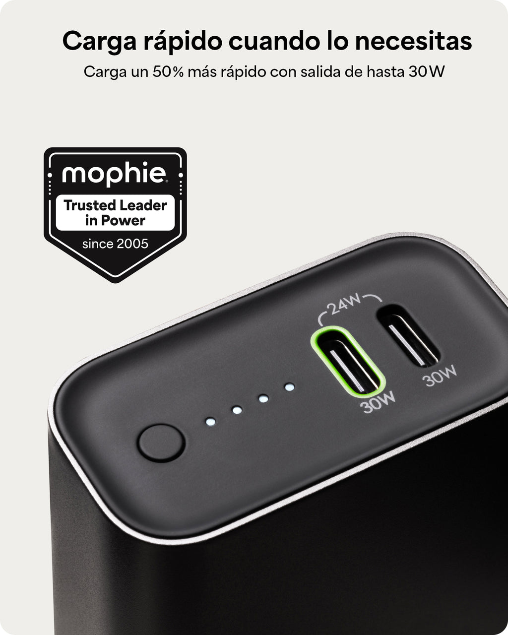 *Carga a máxima velocidad: Carga tu teléfono hasta un 50 % en solo 30 minutos gracias a su salida USB-C PD de 30 W.²